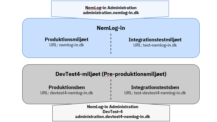 NemLog-in har 3 forskellige miljøer, der er bygget op som vist i figuren nedenfor.
